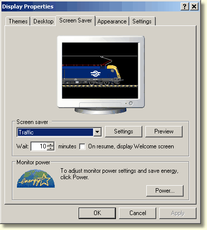 Preview 1 - First locomotive that appears in the mini screen of the menu when the program is previewed from the Windows screensaver selection screen. This is found in Start | Control Panel | Display | Screensaver or by right clicking on the Windows Desktop and selecting Display from the context menu.